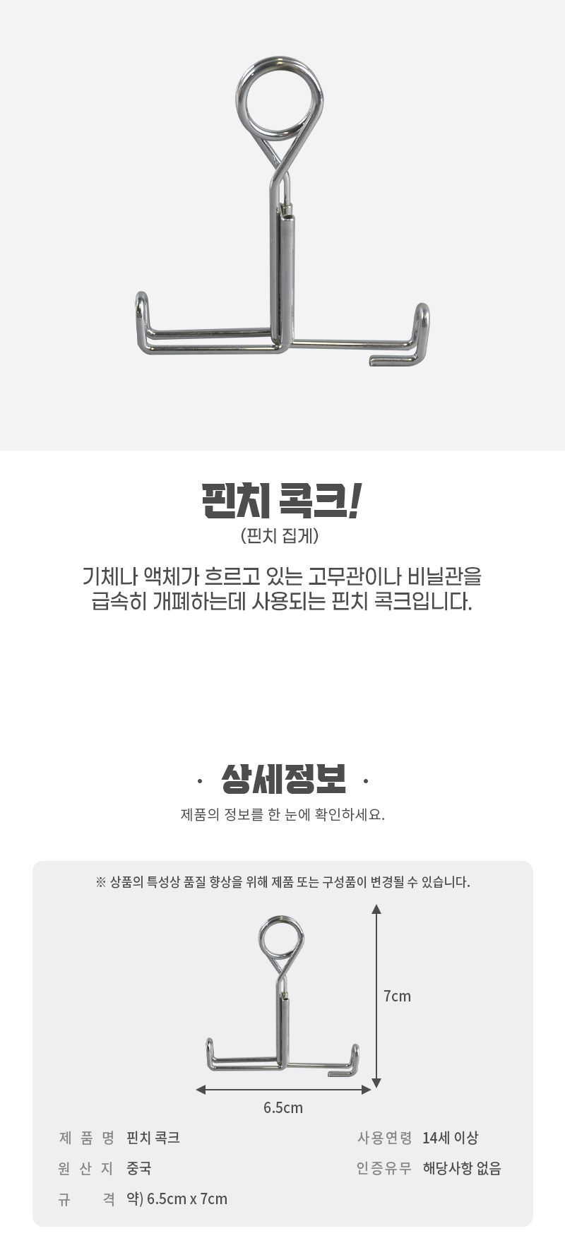 | 품명 및 모델명 | [와니사이언스]핀치 콕크(핀치 집게) |