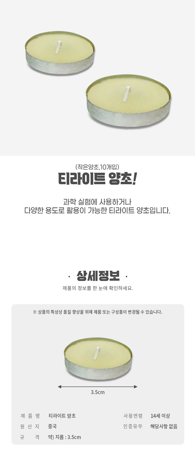 | 품명 및 모델명 | [와니사이언스] 티라이트 양초(10개입) |