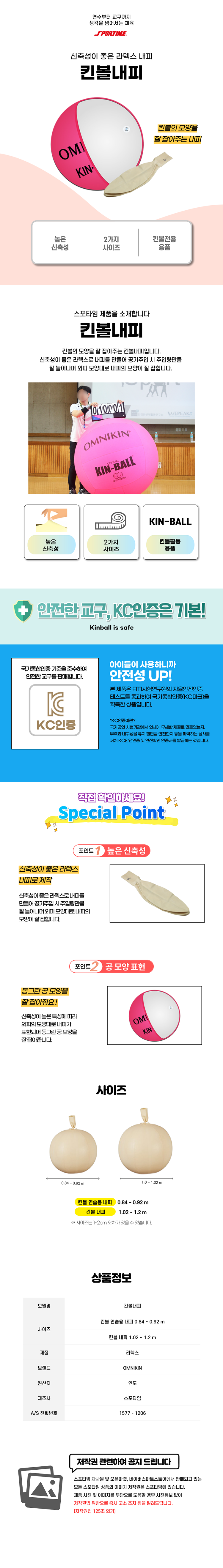 | 크기, 중량 | 킨볼 연습용 내피[0.84~0.92m]/킨볼 내피[1.02-1.2m] |