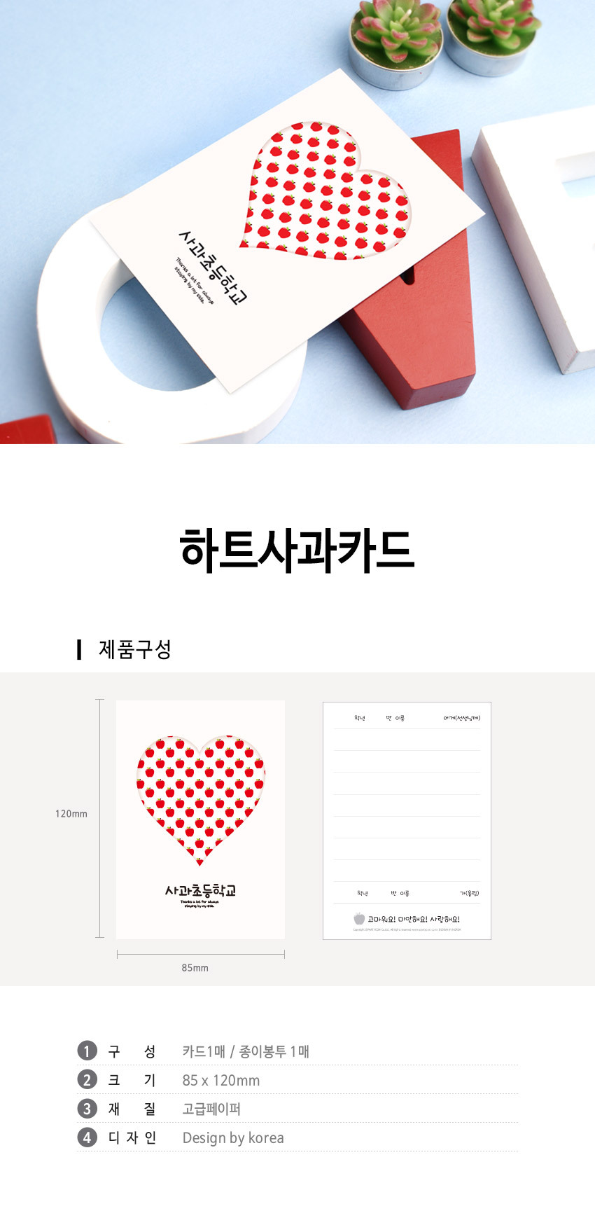 | 품명 및 모델명 | [파티콘] 하트사과카드 (1장부터 주문제작) |