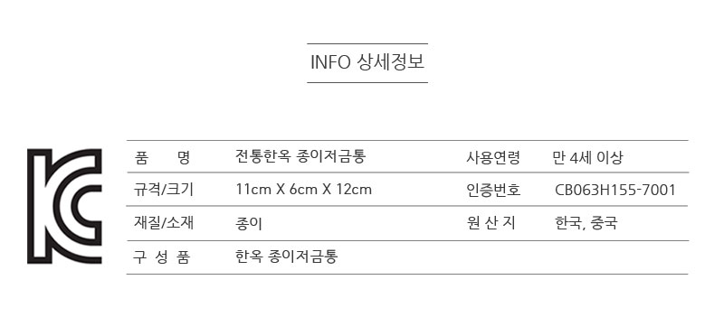 | 품명 및 모델명 | 전통한옥 종이저금통(5인용) |