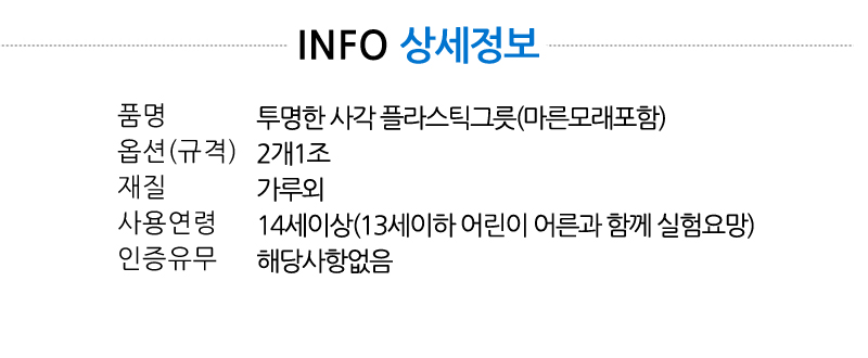| 사용연령/KC인증(허가) | [와니사이언스] 투명한 사각플라스틱 그릇 (2개1조,마른모래포함) WN-5306 |