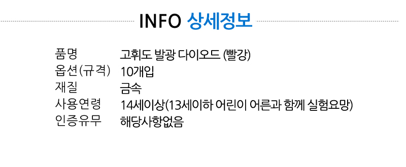 | 품명 및 모델명 | [와니사이언스] 고휘도 발광다이오드(빨강,10개입) WN-681 |