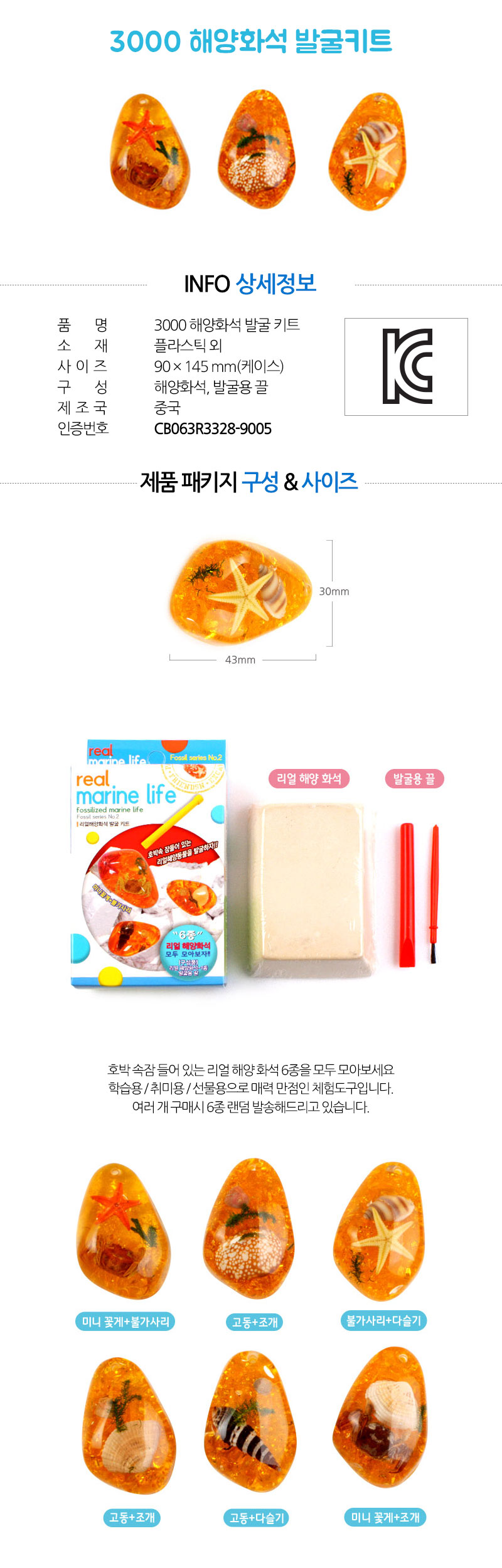 | 품명 및 모델명 | 리얼화석 발굴키트(옵션선택) |