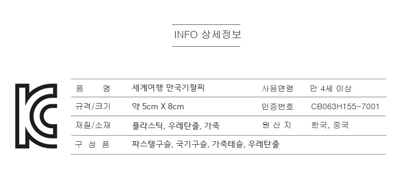 | 품명 및 모델명 | 세계여행 만국기팔찌(5인용) |