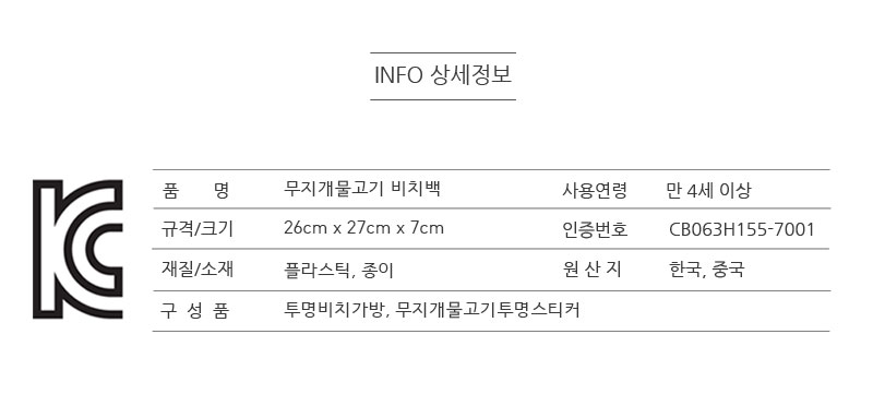 | KC 인증정보 (어린이제품 안전 특별법상 안전인증ㆍ안전확인ㆍ공급자적합성확인대상어린이제품에 한함) | 해당사항 없음 |