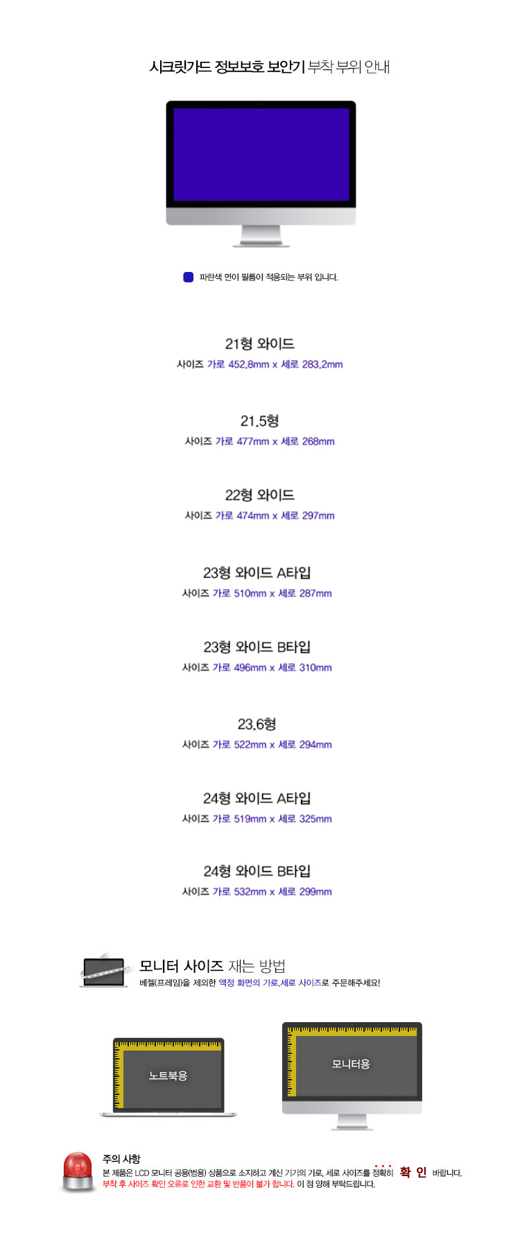 | 품명 및 모델명 | 정보보호 보안필름 / 힐링쉴드 모니터 전용 정보보호 보안필름 |