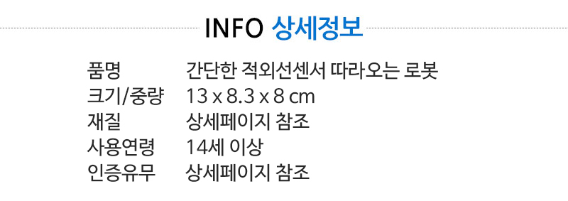| 품명 및 모델명 | [자람사이언스] 간단한 적외선센서 따라오는 로봇 |