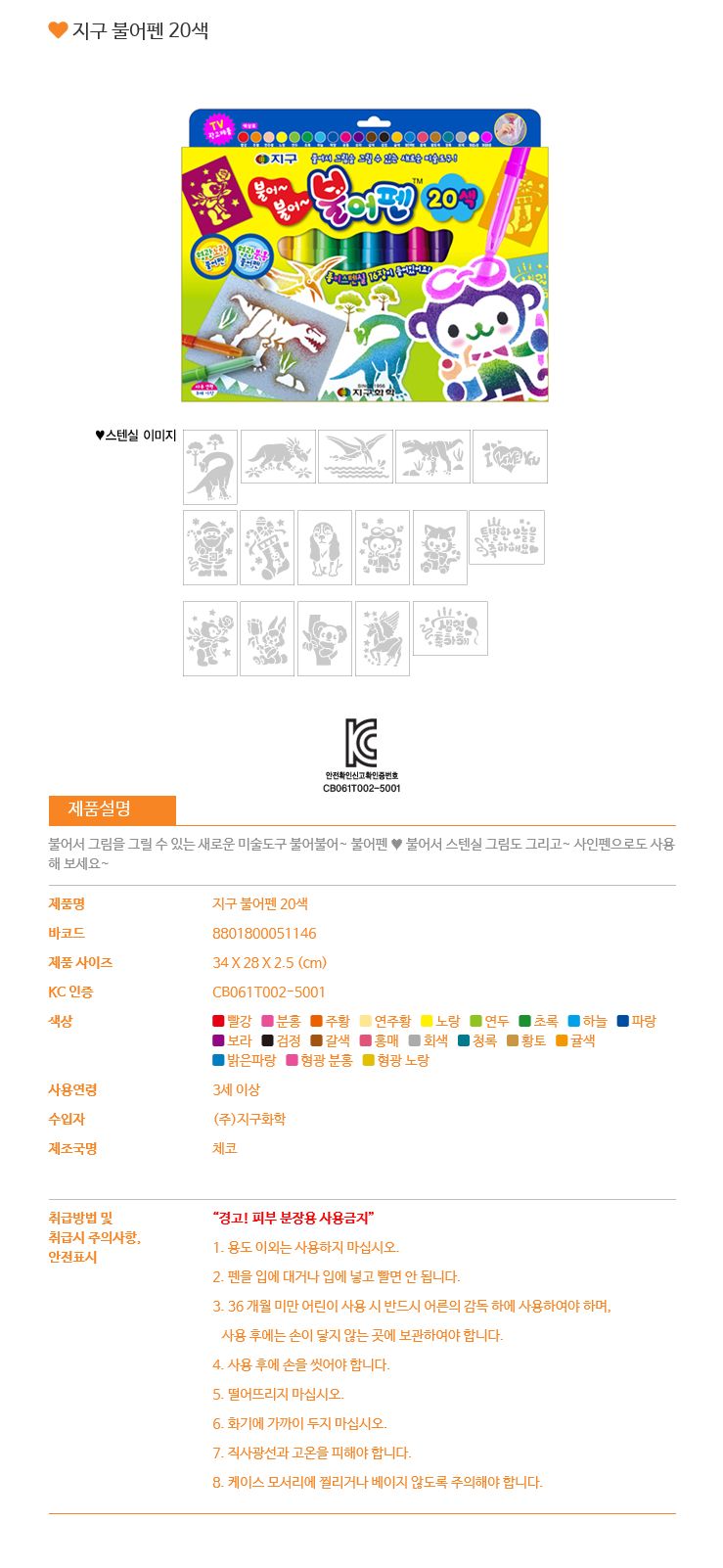 | 품명 및 모델명 | 지구화학 불어펜 20색 |