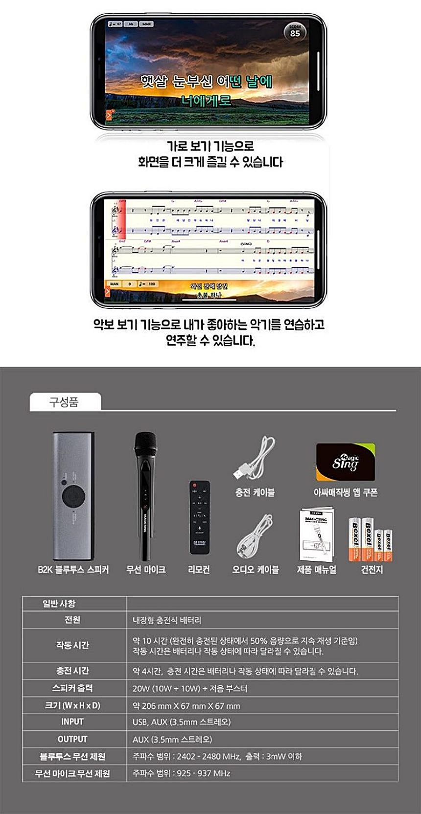 | 품명 및 모델명 | [매직씽] ASSA 고성능 무선 블루투스 마이크+스피커 B2K(20W) |