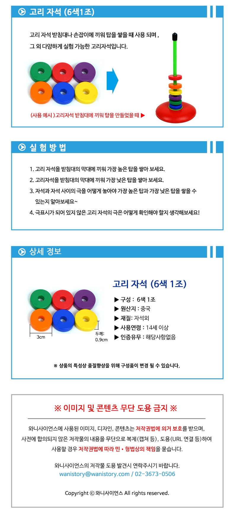 | 품명 및 모델명 | [와니사이언스] 고리자석(6색1조) |