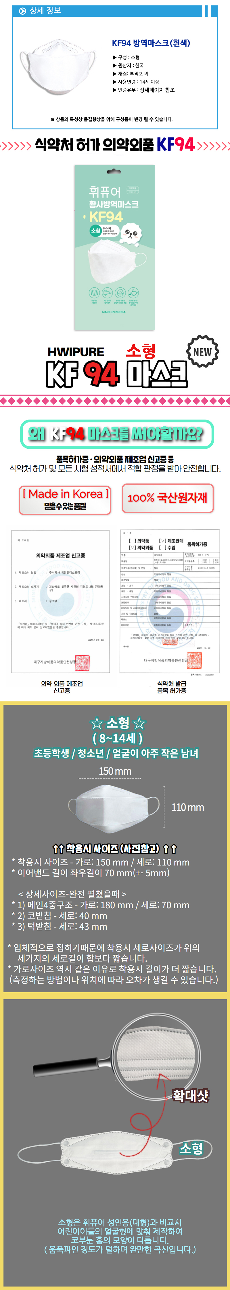 | 품명 및 모델명 | [와니사이언스] KF94 방역 마스크(흰색)(소형) |