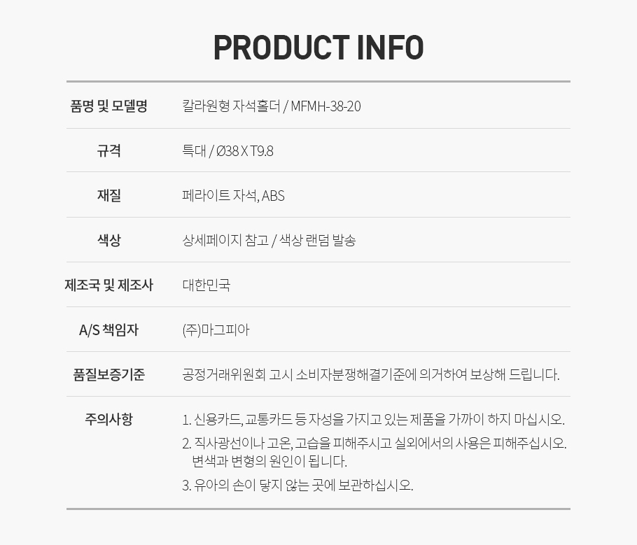 | 품명 및 모델명 | 칼라원형 자석홀더(특대) / MFMH-38 |