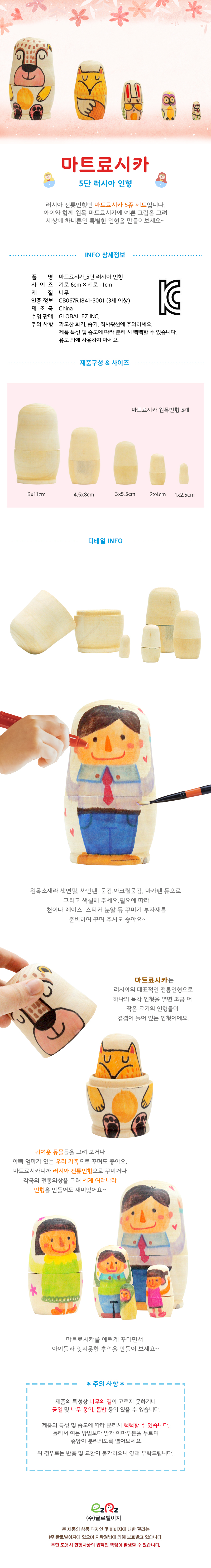 | 품명 및 모델명 | [이지피아] 우드 인형-마트료시카 5단 러시아 인형 |