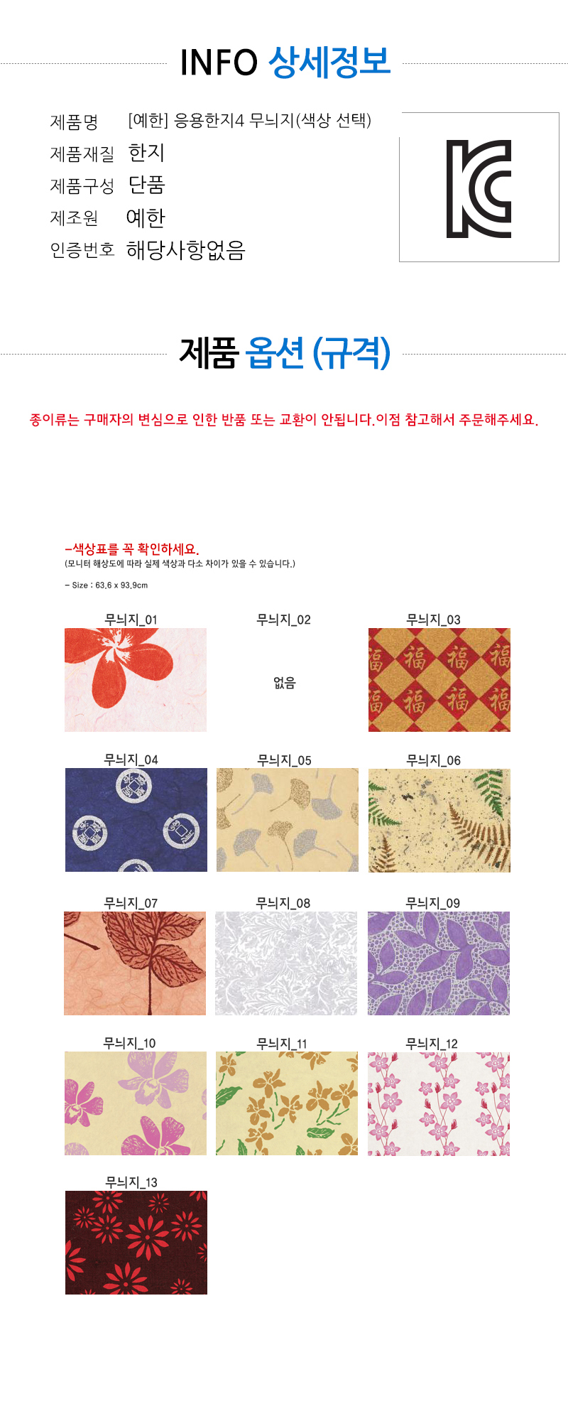 | 품명 및 모델명 | [예한] 응용한지4 무늬지(색상 선택) |