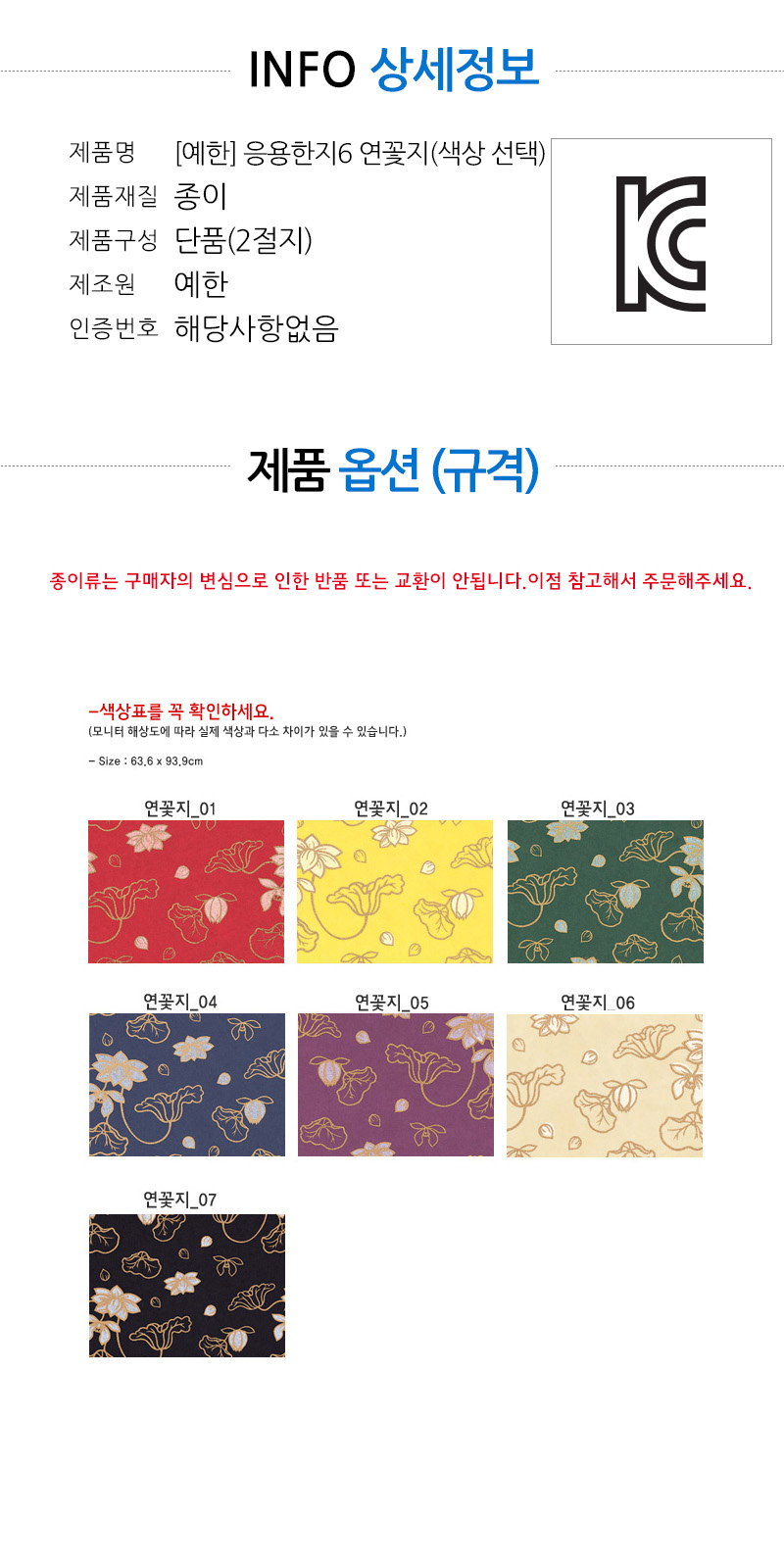 | 품명 및 모델명 | [예한] 응용한지6 연꽃지(색상 선택) |