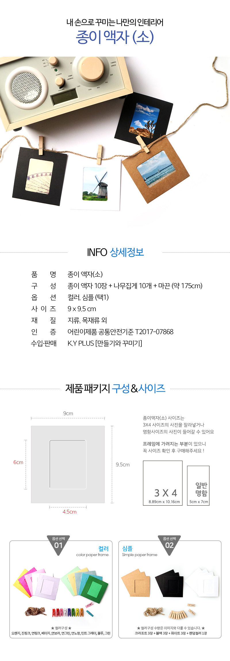 | 품명 및 모델명 | [만꾸] 종이액자 소 컬러 10P 세트 |