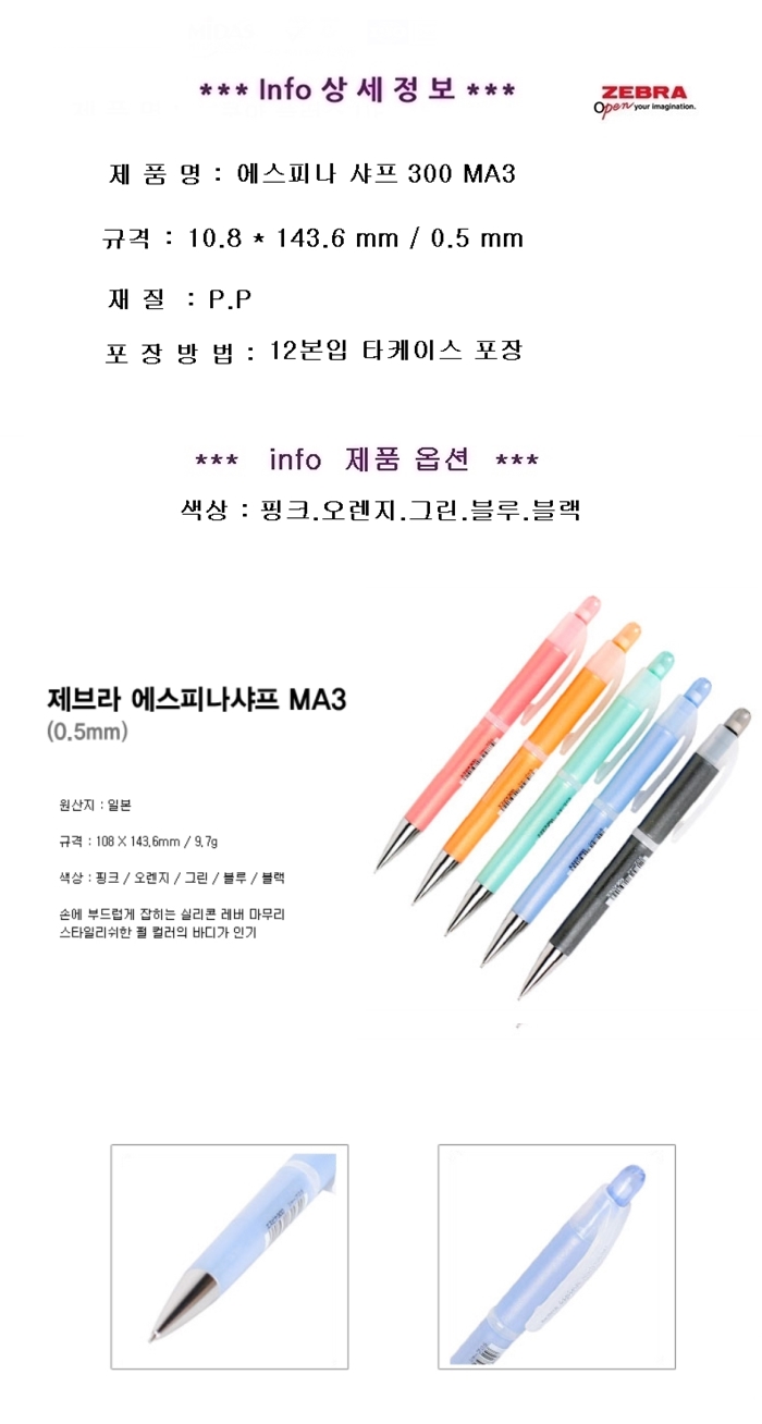 • [제브라] 에스피나 샤프 300 MA3 (옵션선택) 상품번호 : 49699