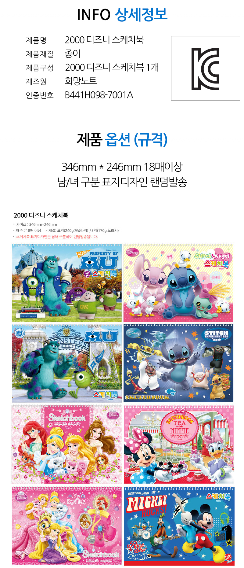 | 품명 및 모델명 | 2000디즈니 스케치북 |