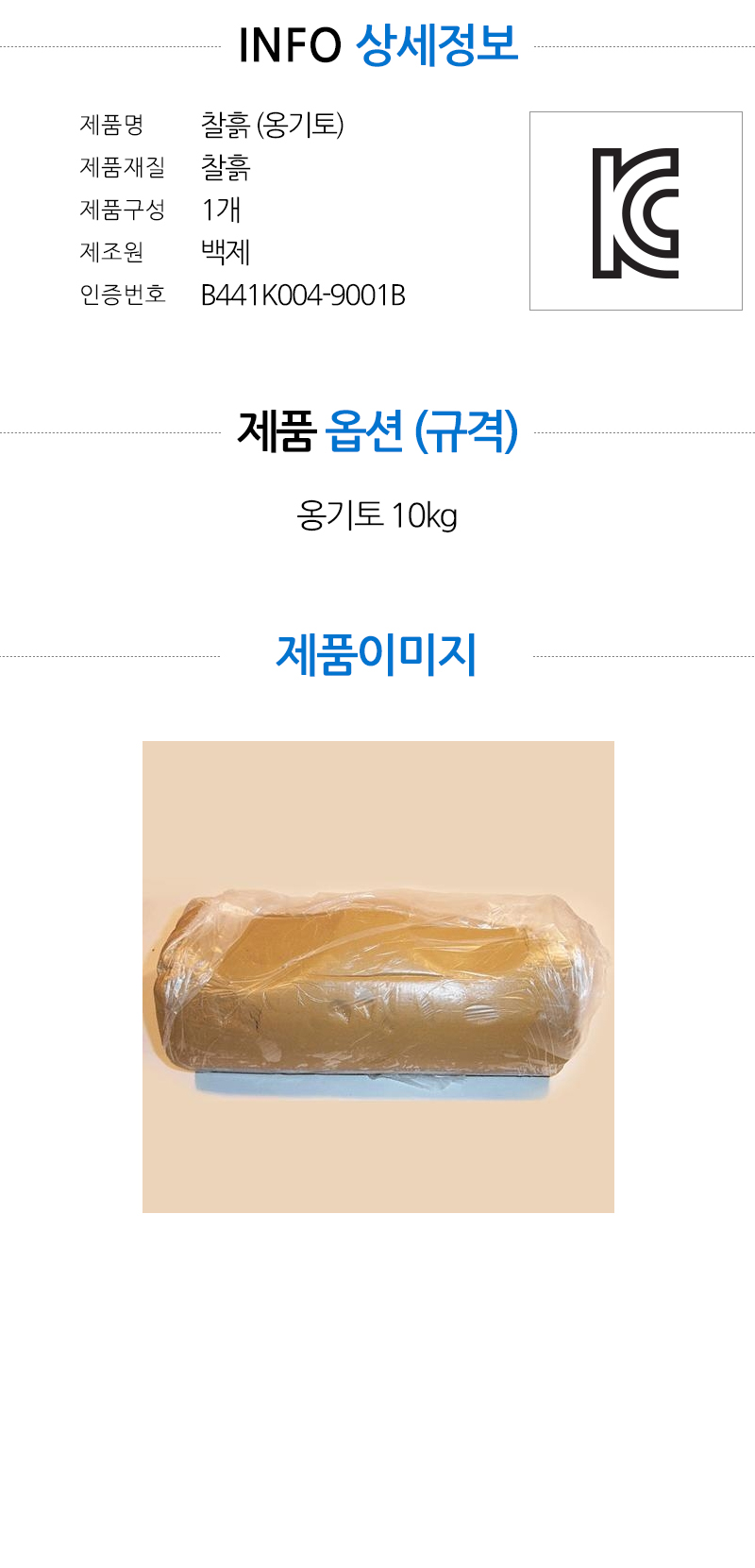 | 품명 및 모델명 | 도자기찰흙(옹기토) |