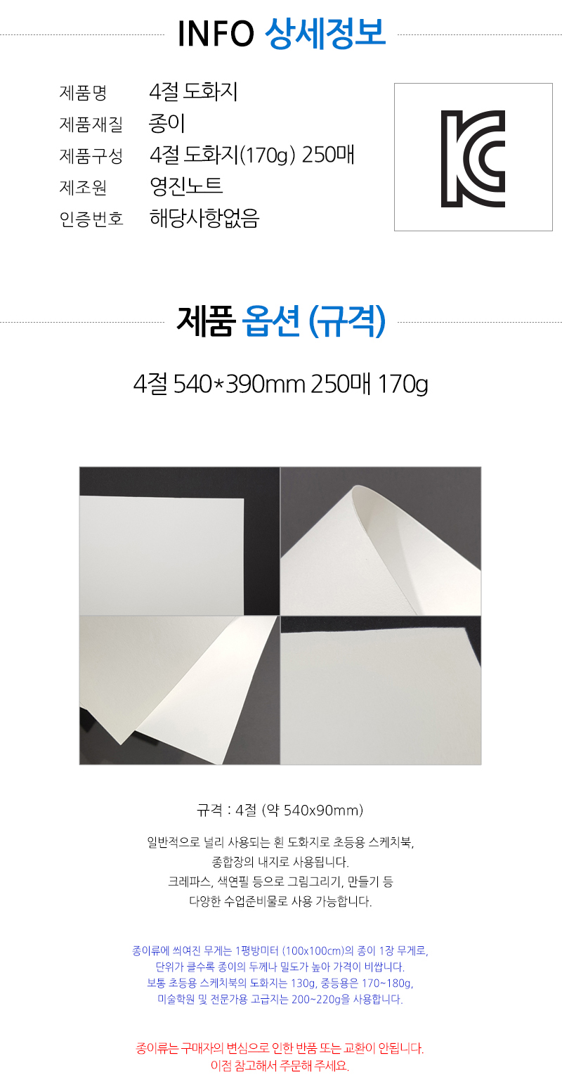 | 품명 및 모델명 | [영진]일반도화지(170g)4절/250매 |