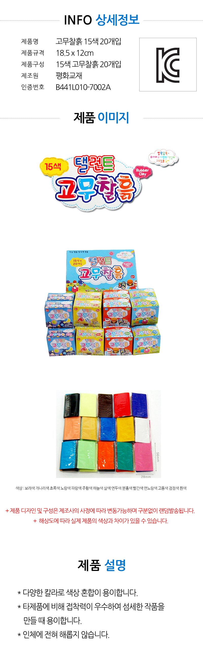 | 품명 및 모델명 | 고무찰흙 15색 20개입 |