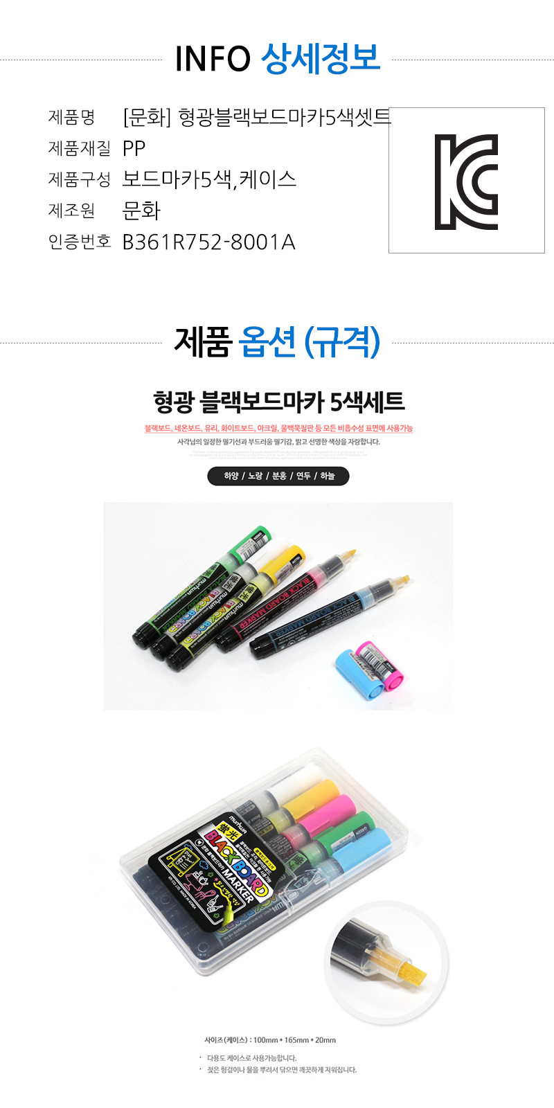 | 품명 및 모델명 | [문화] 형광 블랙보드마카 5색 |