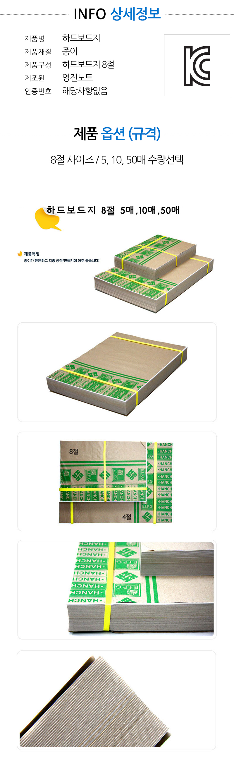 | 품명 및 모델명 | [영진]하드보드지 8절(수량선택) |