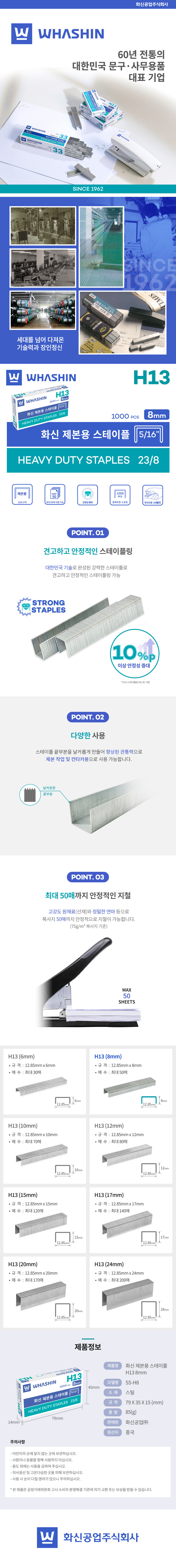 | 품명 및 모델명 | [화신] 제본용 호침 H-13 / 8mm |