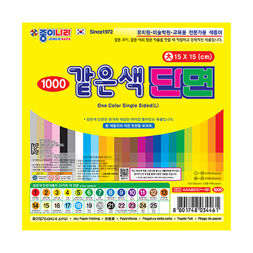 | 품명 및 모델명 | [종이나라] 같은색색종이 단면 25색상 (소(1200매)/대(600매) 택1) |