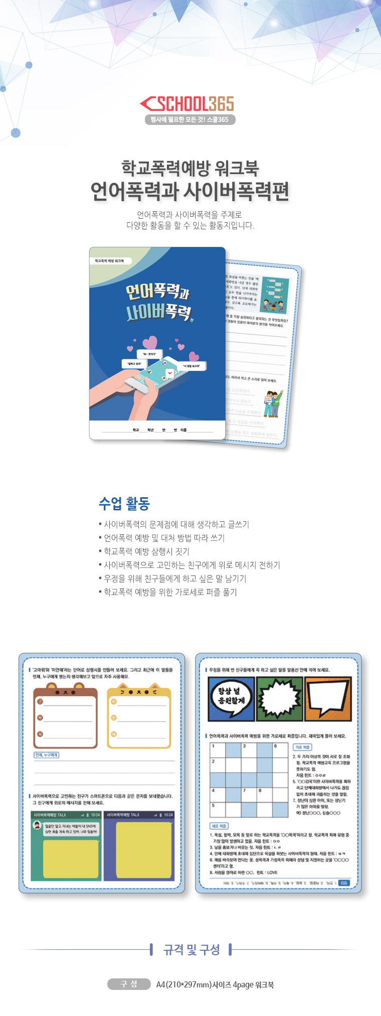 | 품명 및 모델명 | 학교폭력&생활안전예방 활동 워크북 (택1) |