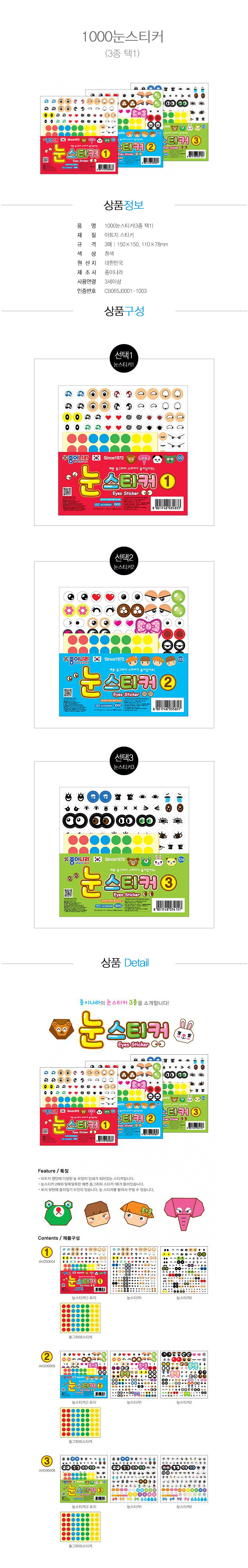| 품명 및 모델명 | 1000 눈스티커(3종 택1) |
