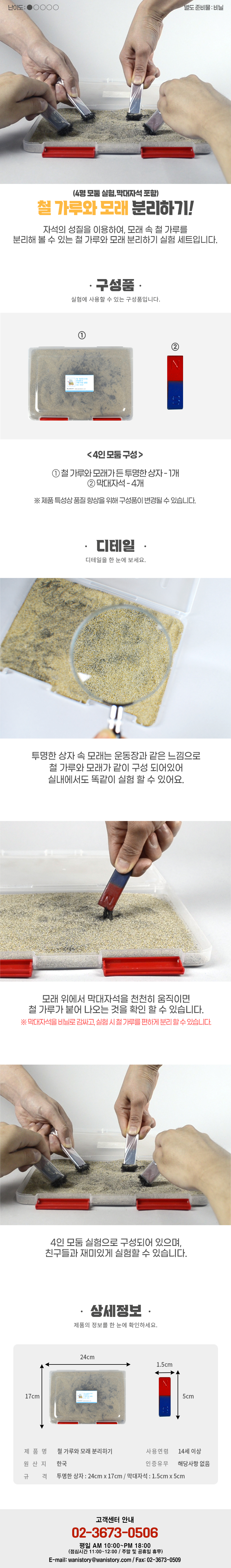 | 품명 및 모델명 | [와니사이언스] 철 가루와 모래 분리하기(4명 모둠 실험,막대자석 포함)(아이스크림) |