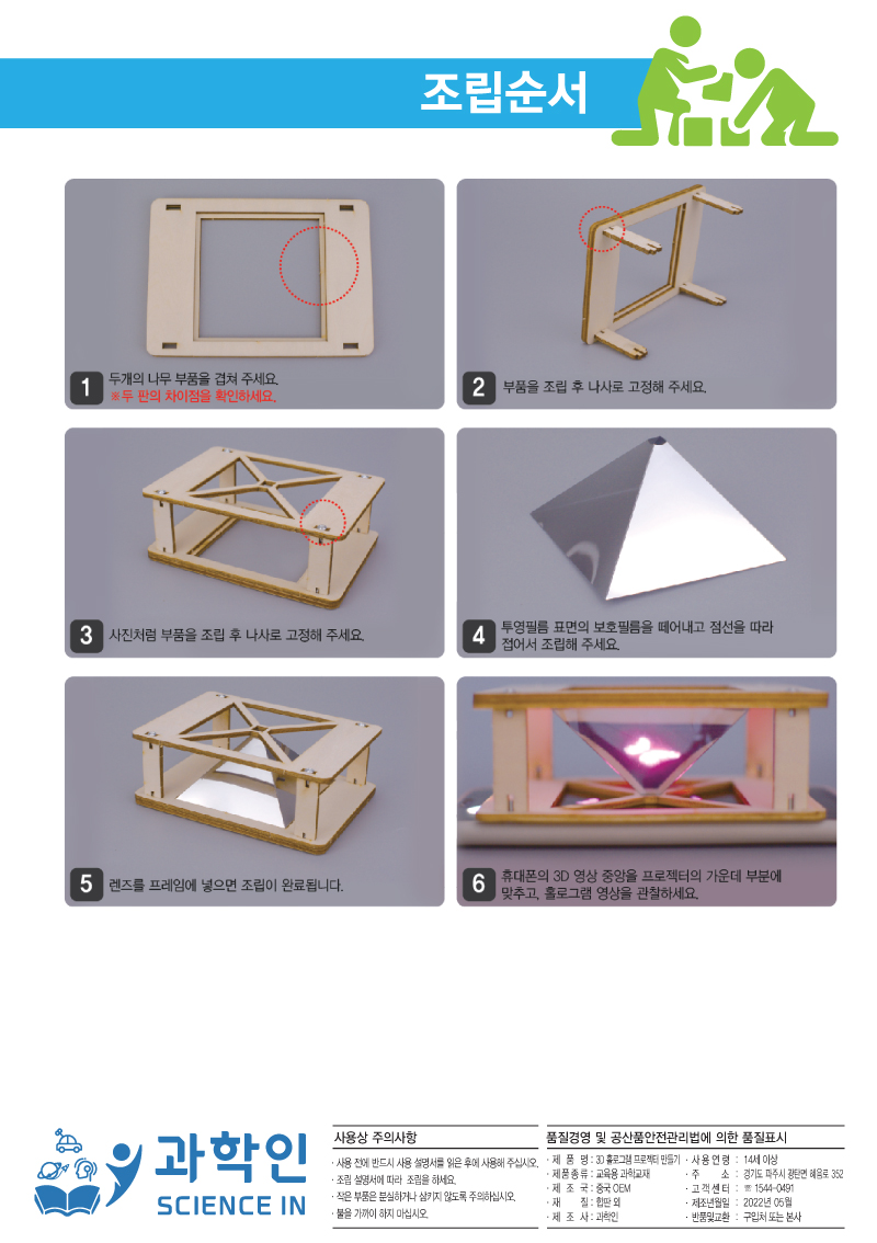 | 품명 및 모델명 | 3D 홀로그램 프로젝터 만들기 |