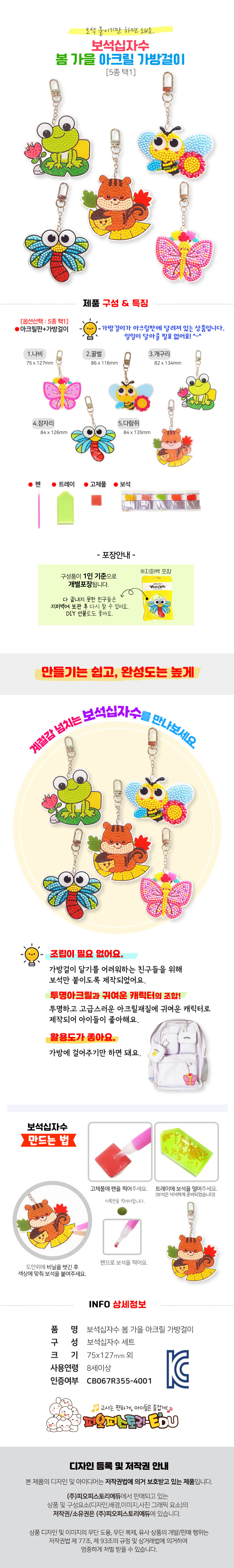 | 품명 및 모델명 | 보석십자수 봄 가을 아크릴 가방걸이(5종 택1) |