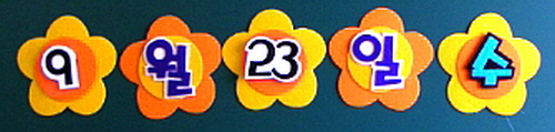 월, 일, 요일은 펠트지를 잘라 만들었고 숫자는 코팅입니다.