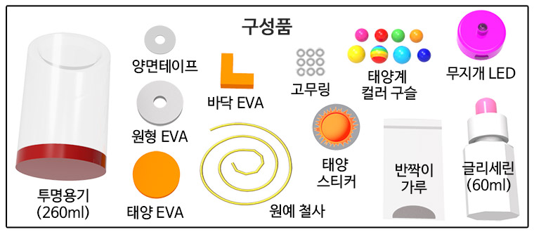 | 재질 (섬유의 경우 혼용률) | [용기,무지개LED,구슬]플라스틱 ,[원예철사]알루미늄, [그외]EVA |