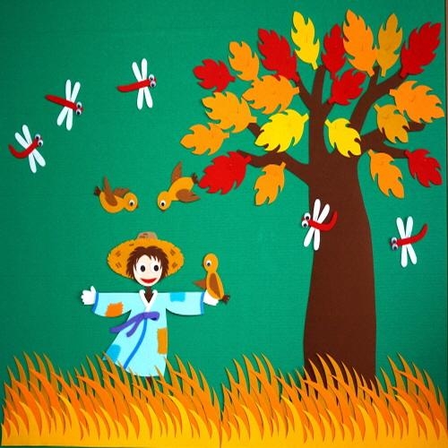 * 구성: 가을들판(2), 나무(1), 가을나뭇잎(20장), 하늘색 허수아비(1), 참새 3마리