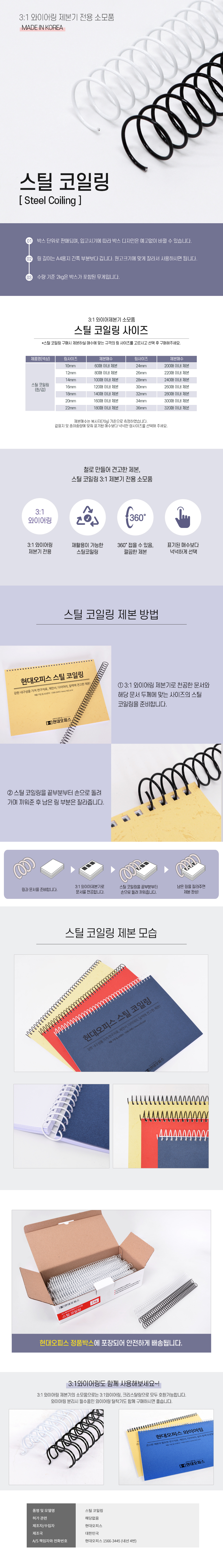 | 품명 및 모델명 | [현대오피스] 국산 스틸코일 제본링 |