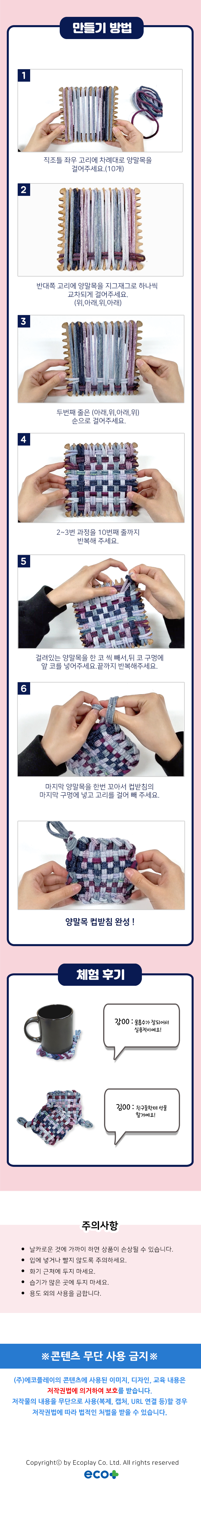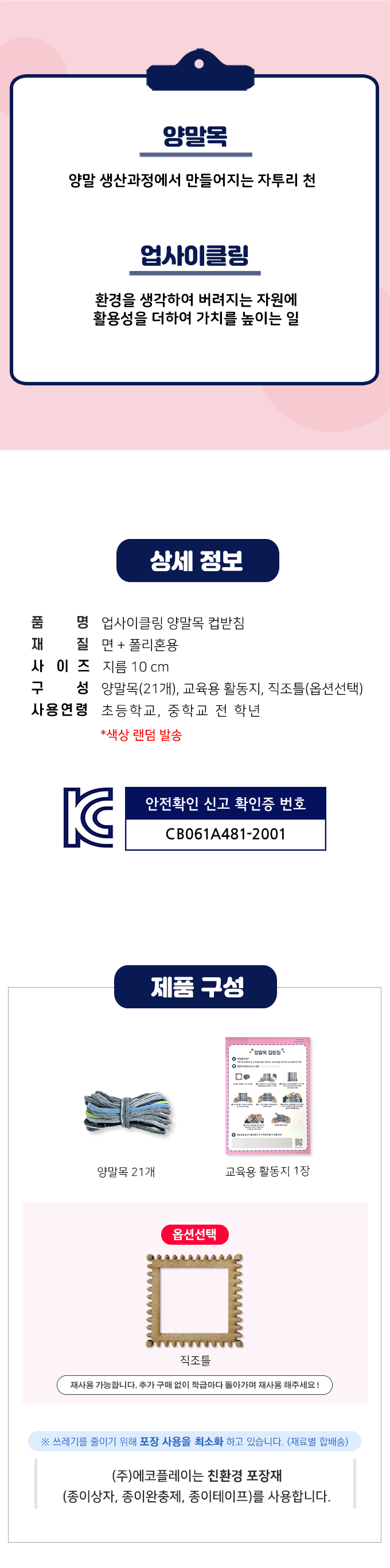 | 품명 및 모델명 | 업사이클링 양말목 컵받침 |