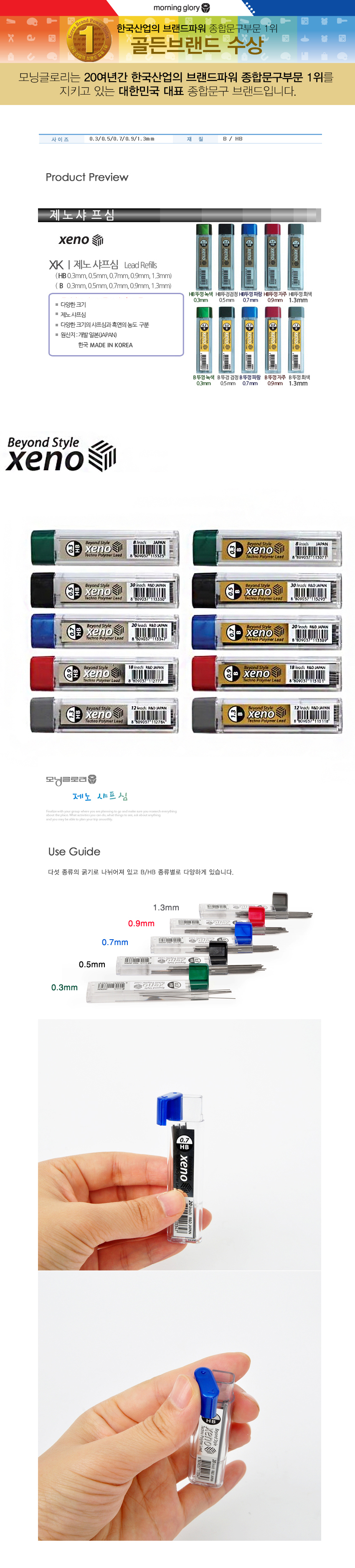 | 품명 및 모델명 | [모닝글로리] 제노 샤프심 HB B 0.3mm 0.5mm 0.7mm 0.9mm 1.3mm |
