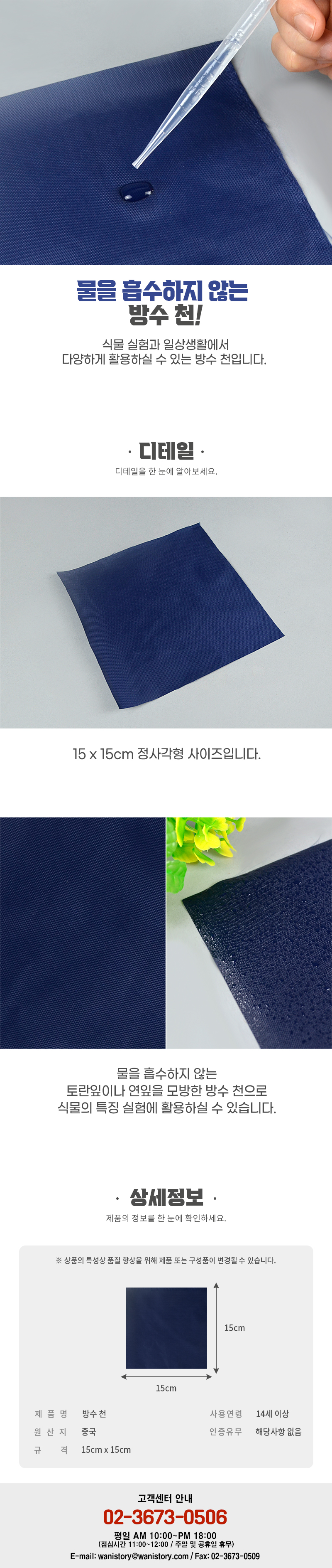 | 품명 및 모델명 | [와니사이언스] 방수 천(5장입, 15*15cm)(지학사) |