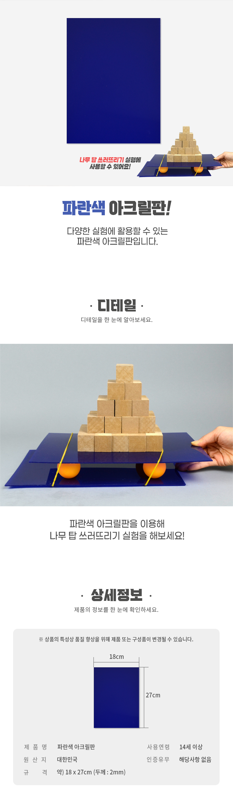 | 품명 및 모델명 | [와니사이언스] 파란색 아크릴판(18*27cm, 두께2mm) |