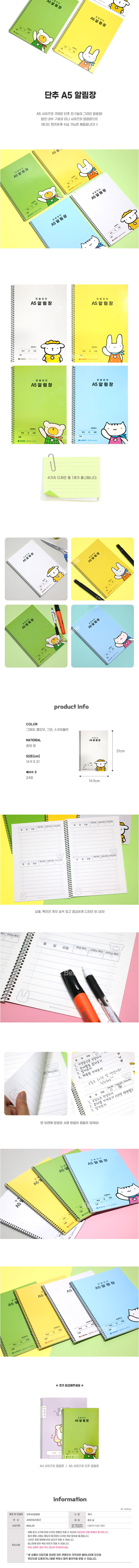 | 품명 및 모델명 | [베어나인] 단추 A5 알림장 노트 |