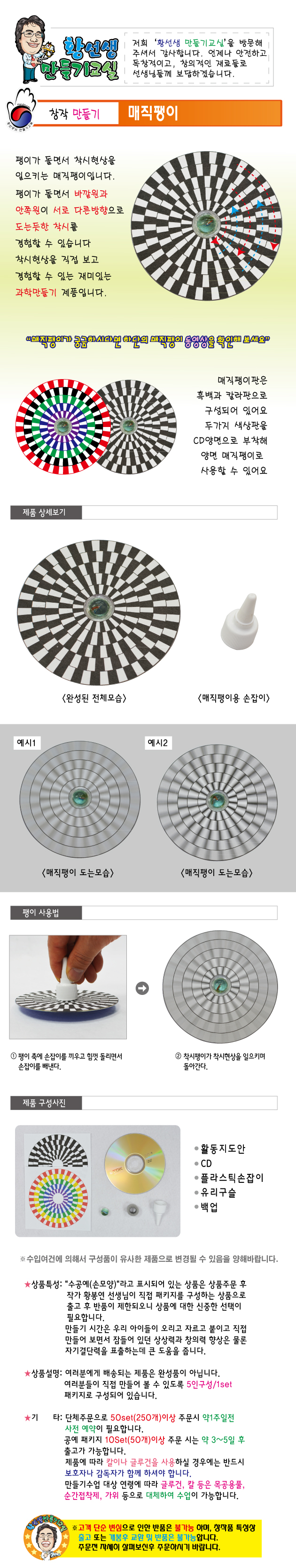 | 품명 및 모델명 | [황선생] 매직팽이 만들기 Set(5인용) |