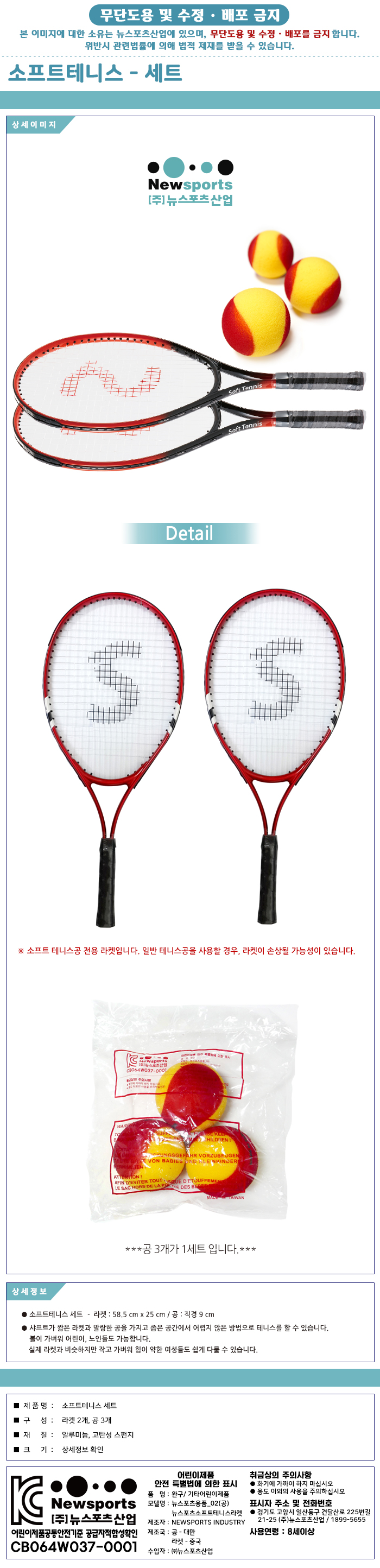 | KC 인증정보 (어린이제품 안전 특별법상 안전인증ㆍ안전확인ㆍ공급자적합성확인대상어린이제품에 한함) | 라켓-공급자적합성/공-안전확인 CB064W037-0001 |