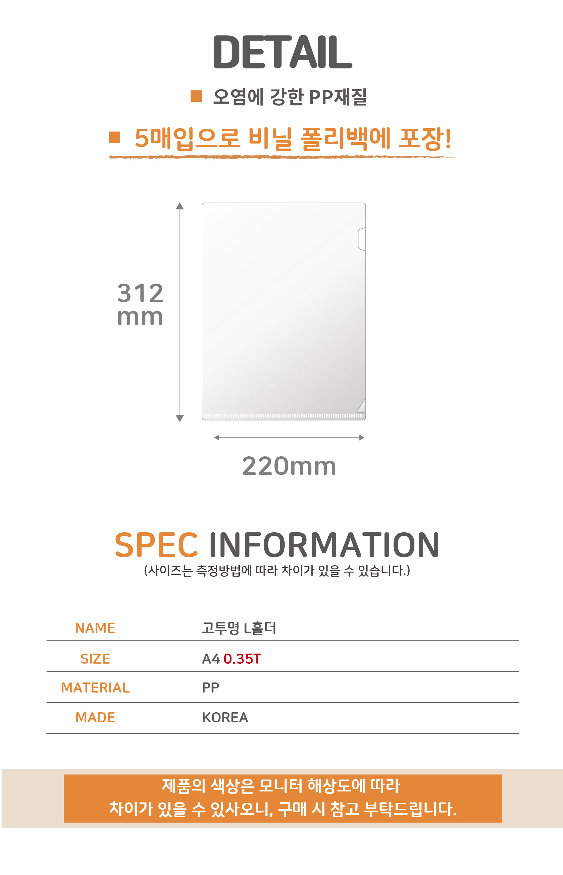 | 품명 및 모델명 | A4 고투명 L홀더 0.16T 0.18T 0.35T |