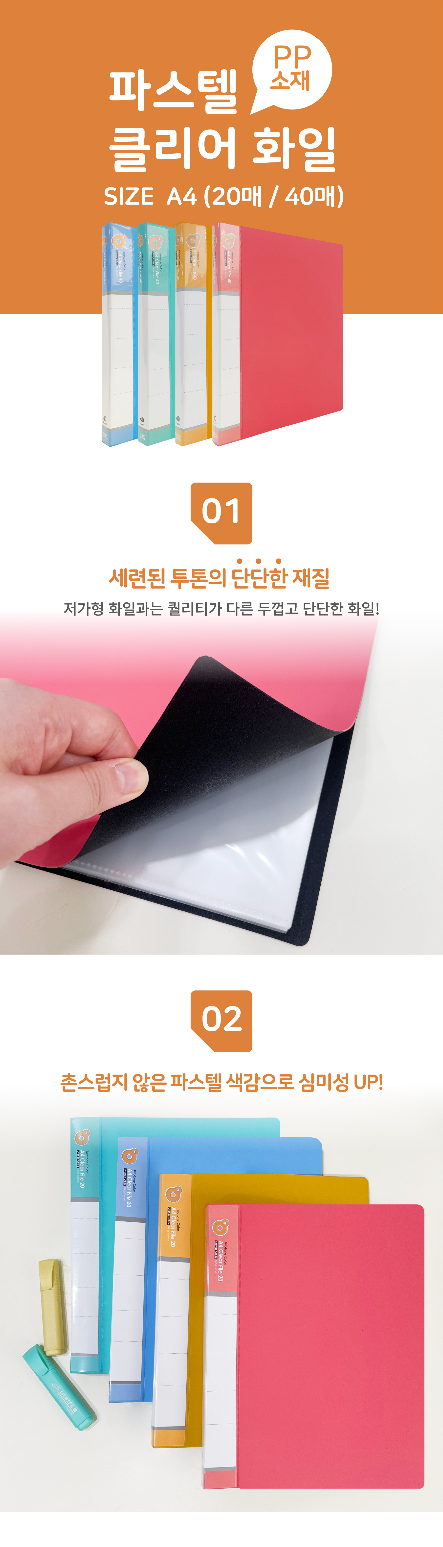 | 품명 및 모델명 | A4 튼튼한 파스텔 클리어화일 20매 40매 리필 가능 |