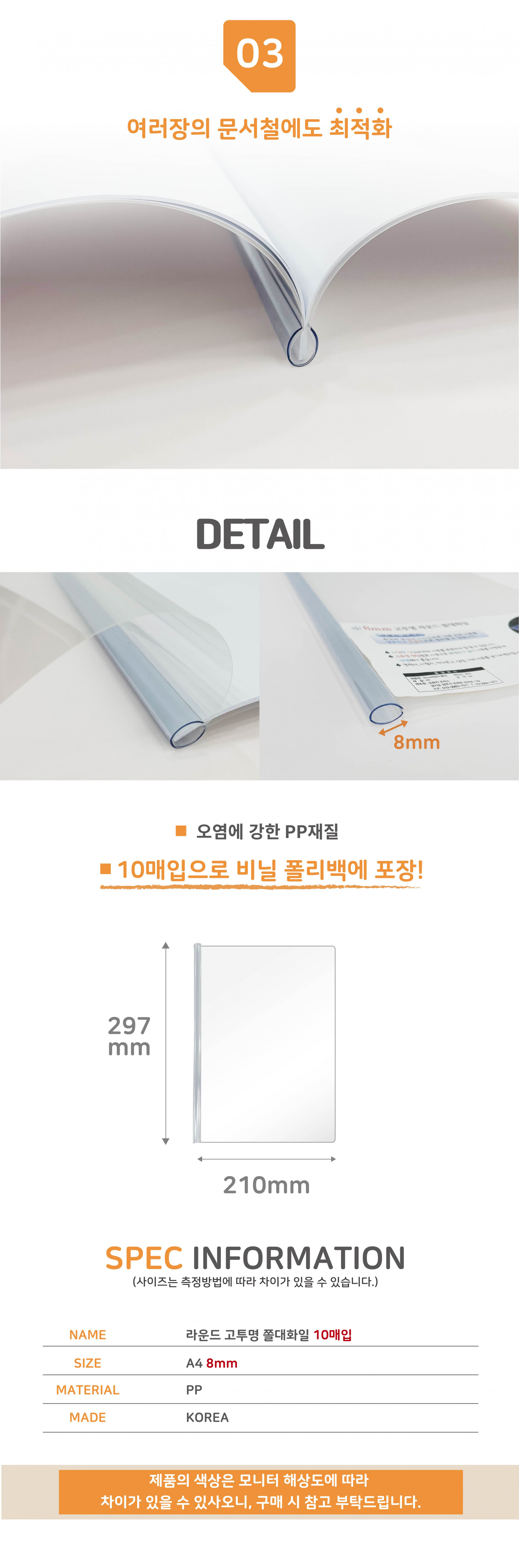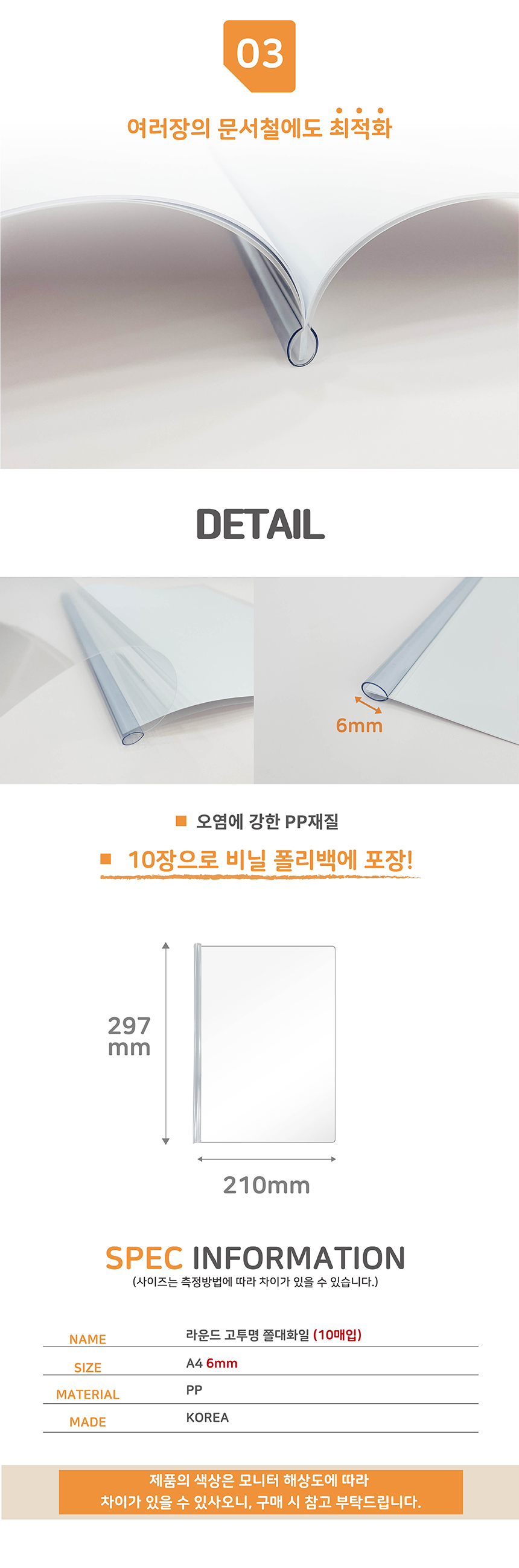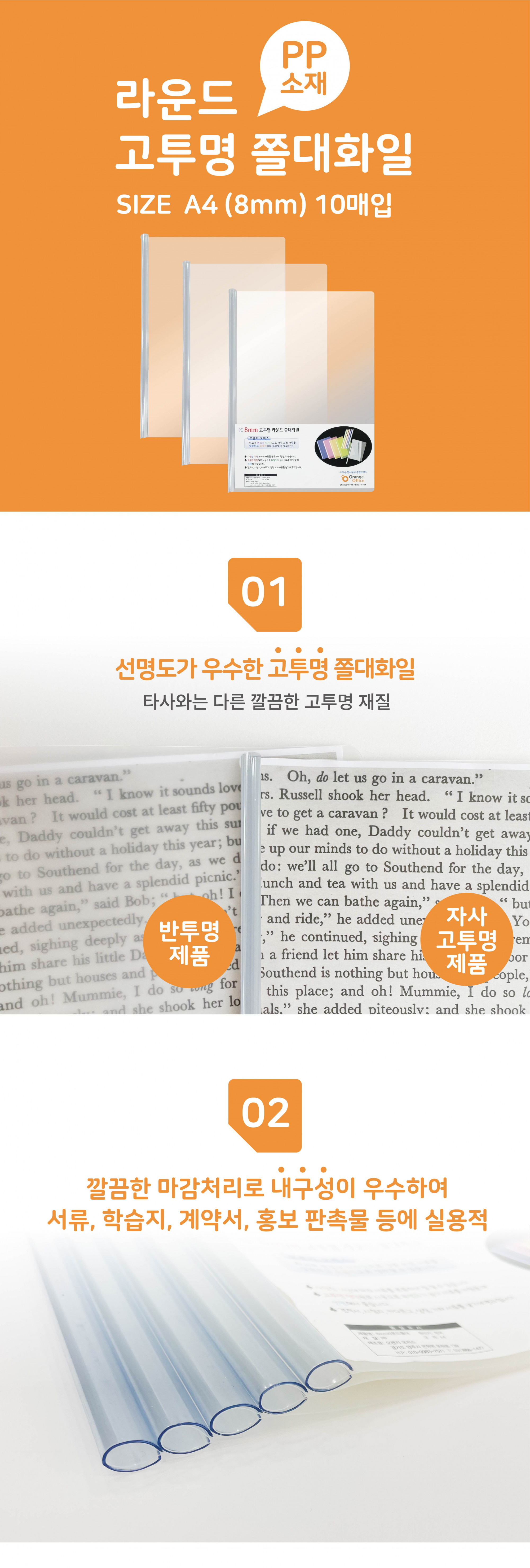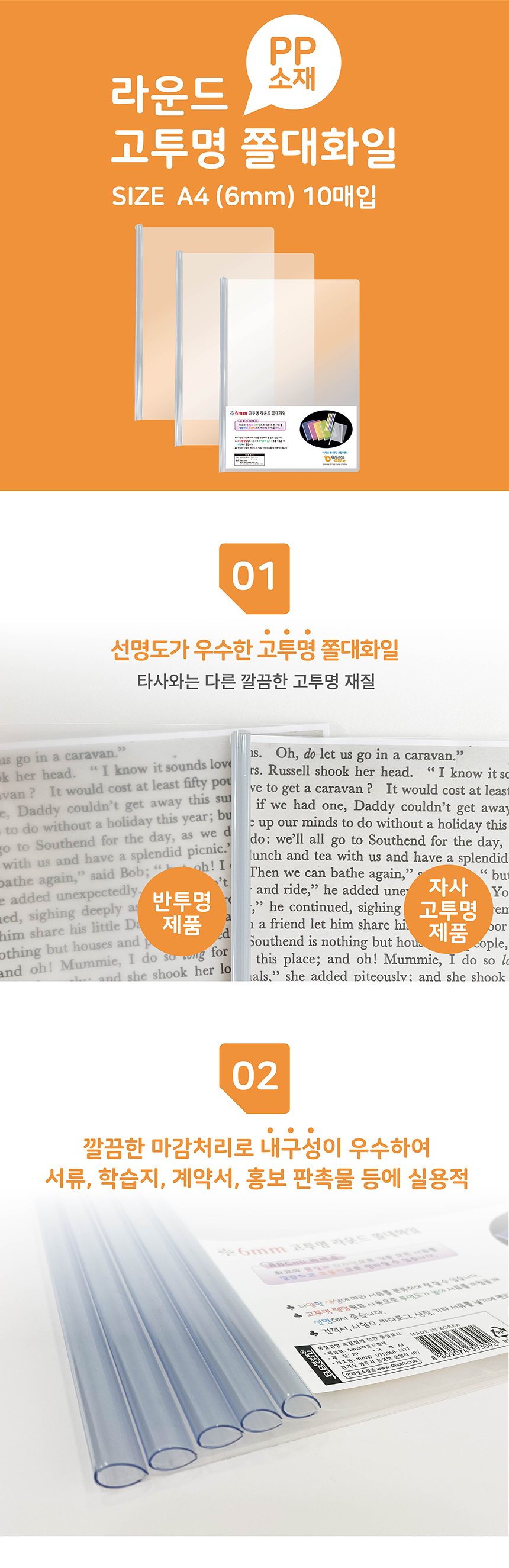 | 품명 및 모델명 | A4 고투명 둥근 쫄대 화일 10개 - 6mm 8mm |