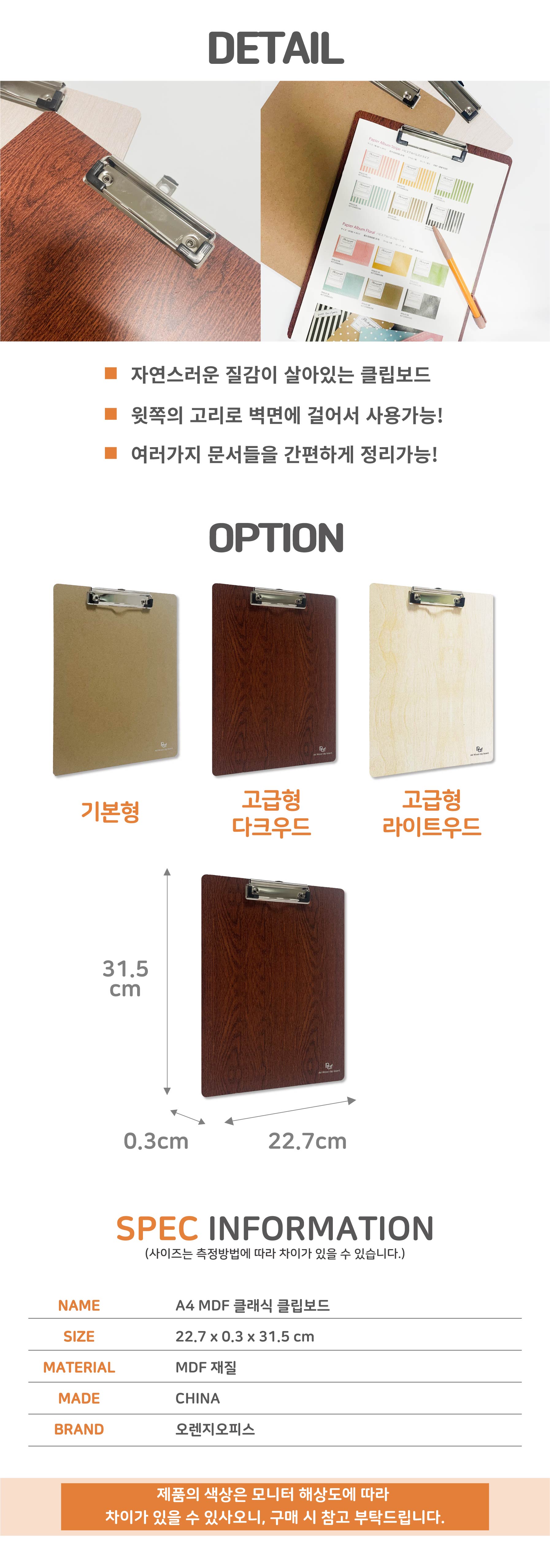| 품명 및 모델명 | MDF 클래식 클립보드 기본 고급형 |